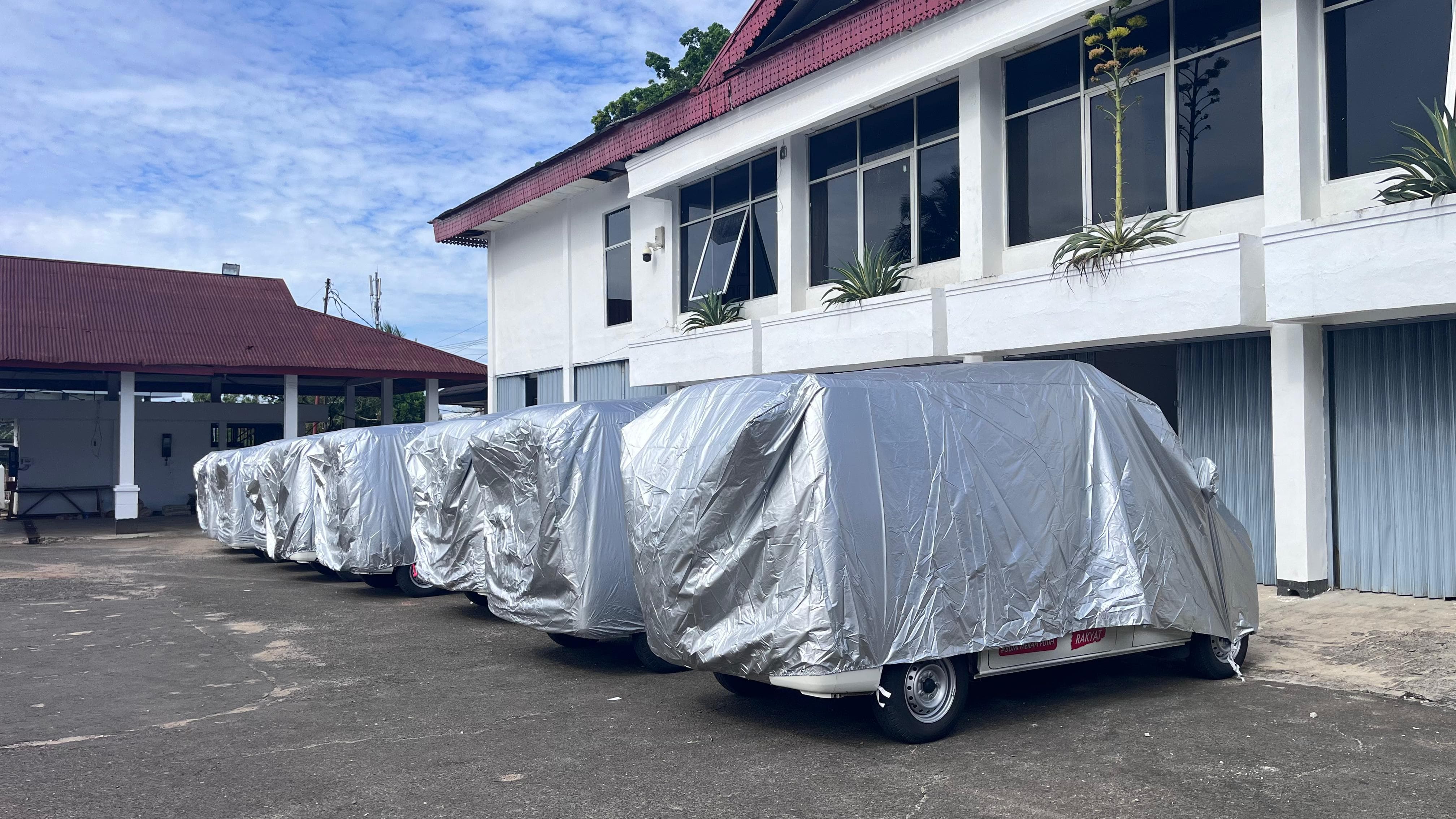 Saat ini seluruh ambulans masih disimpan sementara di halaman Balai Raya Semarak sembari menunggu jadwal penyerahan resmi kepada para bupati.