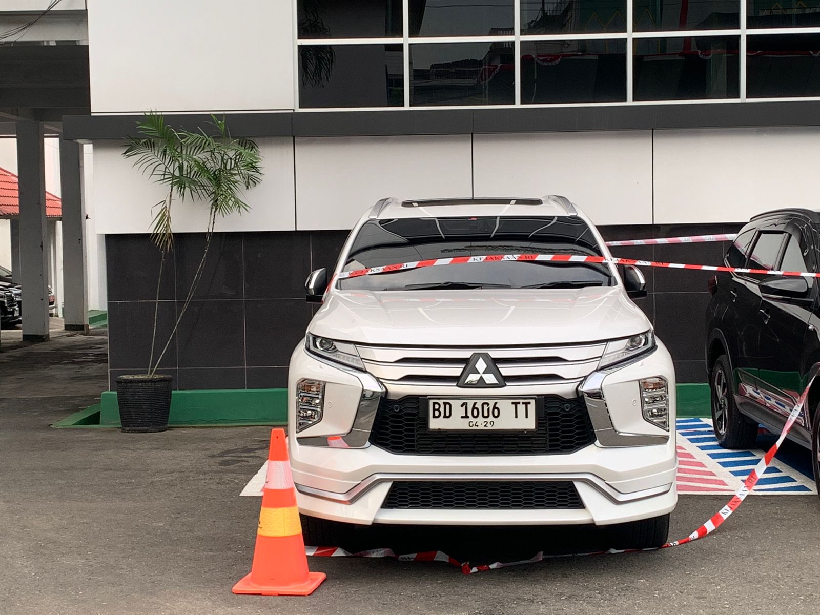 1 unit mobil Mitsubishi Pajero Sport warna putih tahun 2023 berpelat BD 1606 TT atas nama Agusman.