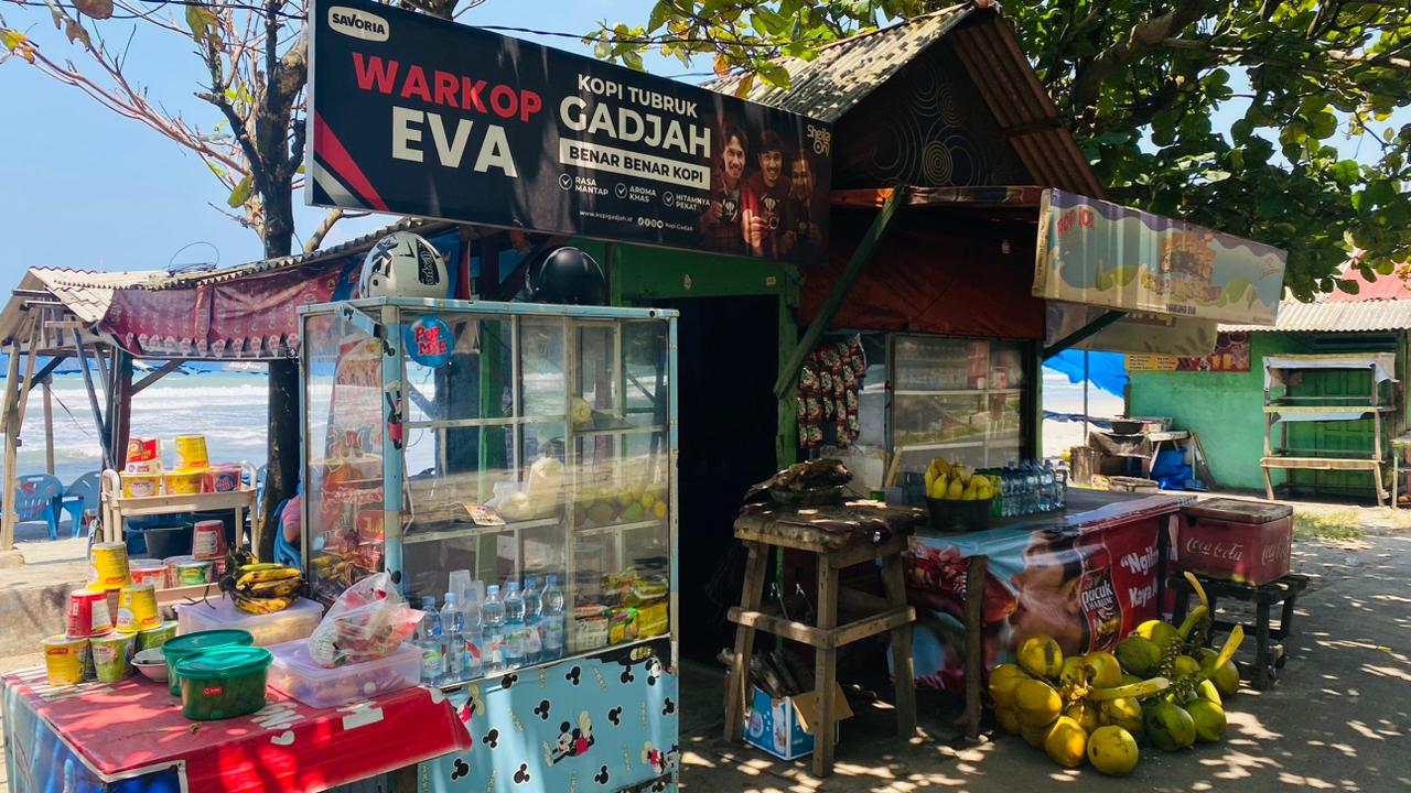 Perlahan, wajah Warkop Eva berubah. Ia memasang atap baru, mengecat papan nama, menata kursi kayu, dan mempercantik tampilan warung agar lebih nyaman bagi pengunjung yang ingin menikmati matahari terbenam.