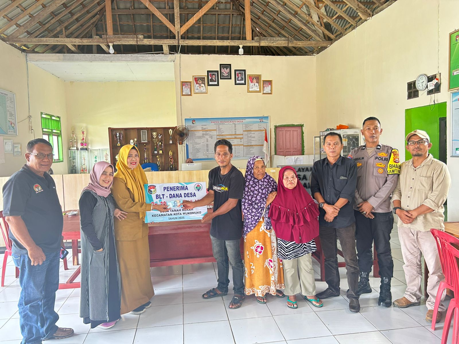 Penyaluran BLT-DD ini dipimpin langsung oleh Penjabat (Pj) Kepala Desa bersama perangkat desa, serta turut dihadiri oleh Camat Kota Mukomuko, BPD, Bhabinkamtibmas, Babinsa, pendamping desa, KPM dan tamu undangan lainnya.