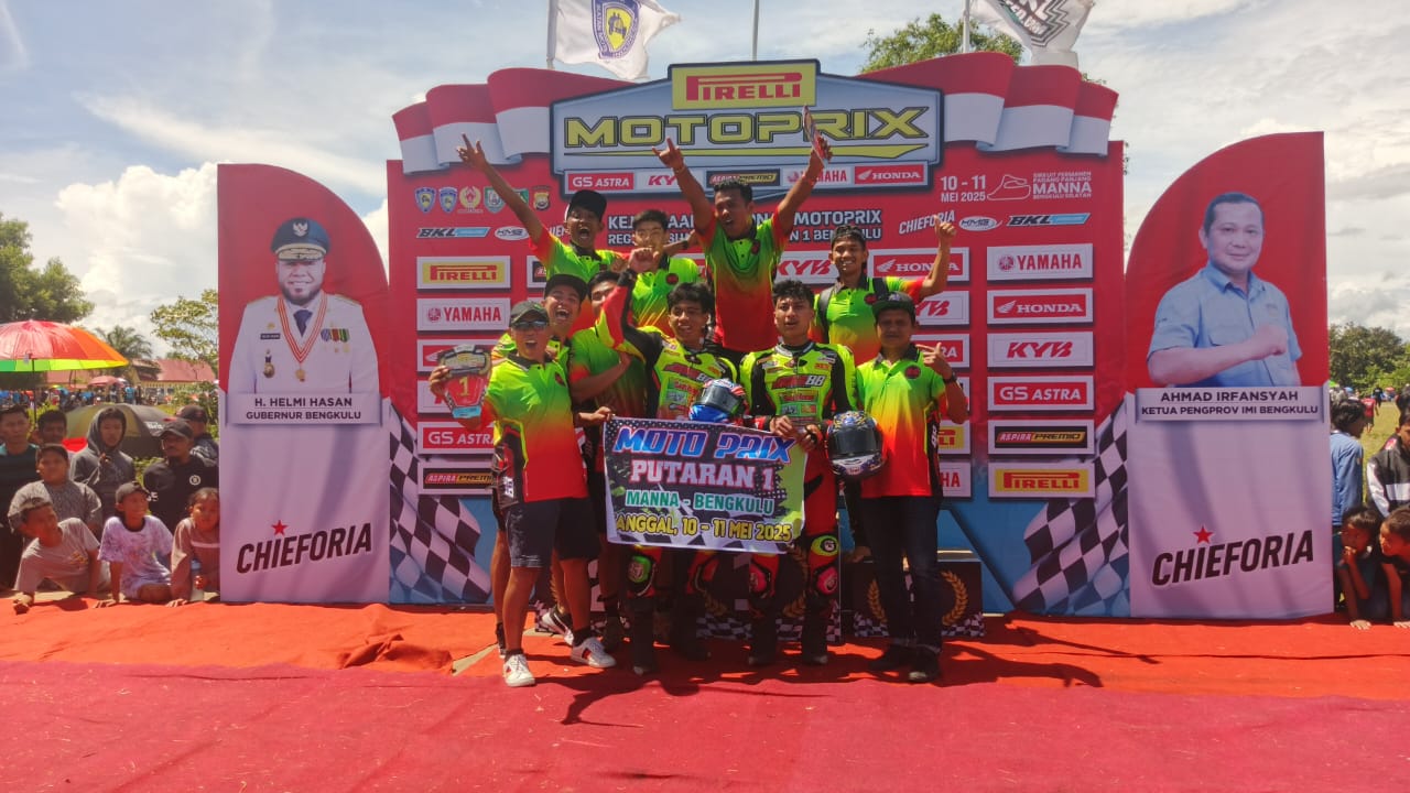 BENGKULU SELATAN, RAKYATBENGKULU.COM – Team Suhandi Padang 88 Racetech RCB Pirelli tampil gemilang di Kejuaraan Nasional Motoprix Piala Presiden Region A Sumatera, dengan menyapu bersih podium teratas kelas MP1 Expert 150 CC.