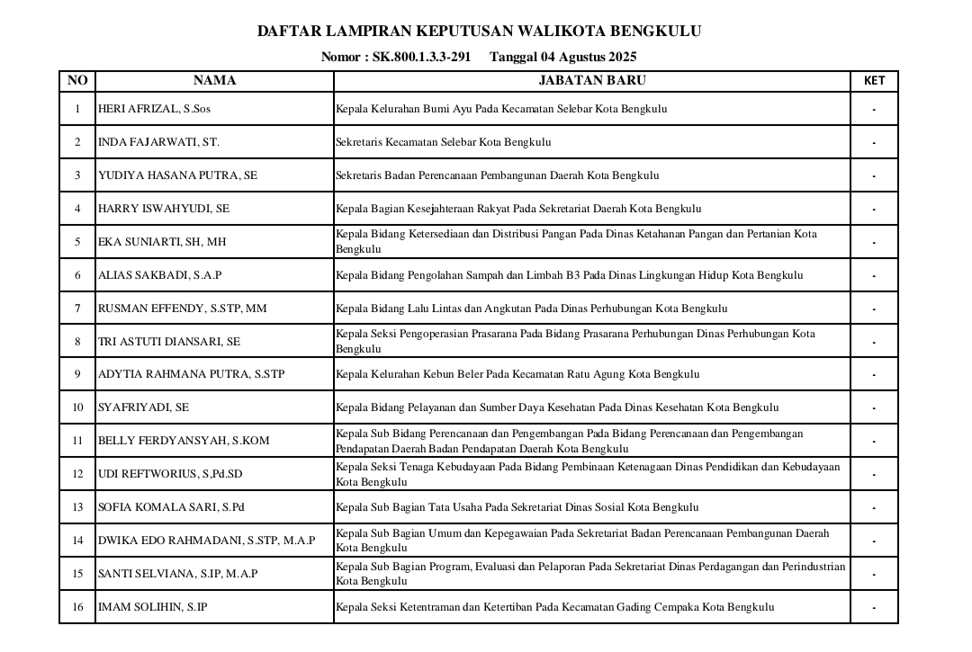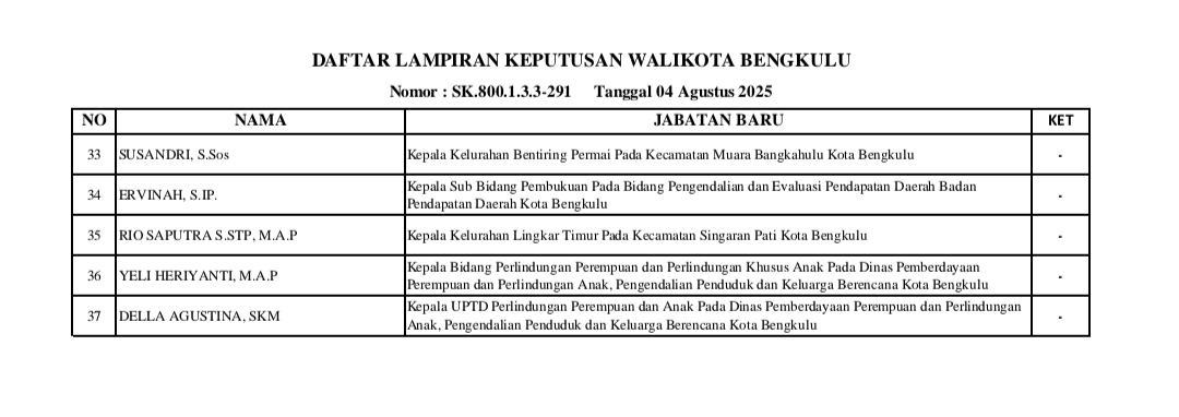 Berikut daftar lengkap jabatan pejabat eselon III dan IV yang dimutasi: