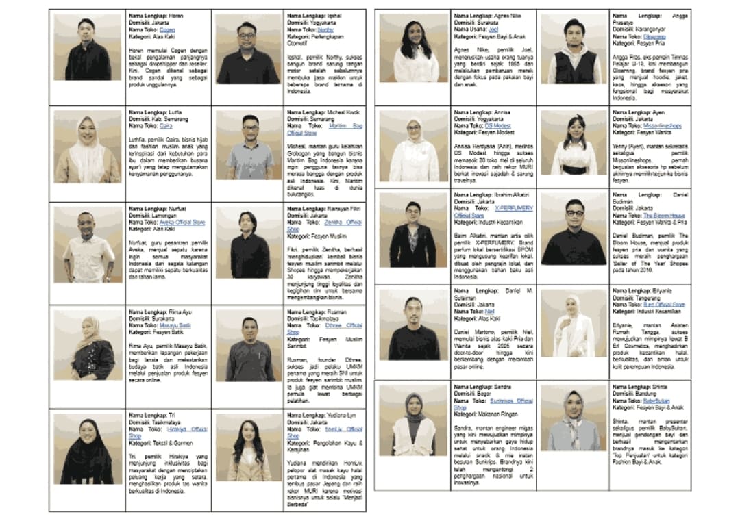 Berikut ini adalah profil singkat dari peringkat 20 besar Shopee Jagoan UMKM Naik Kelas